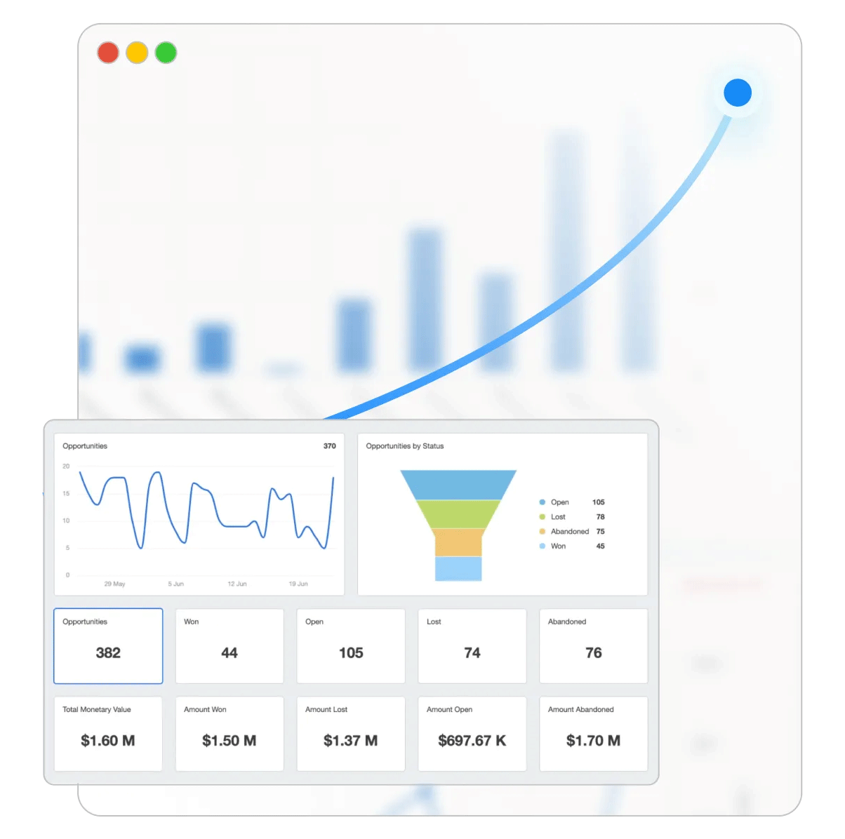 Con nuestra función integrada de gestión de embudos, puedes hacer seguimiento de dónde están los leads y en qué etapa se encuentran dentro del proceso de ventas.